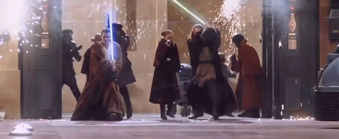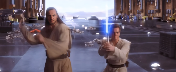 Юэн Макгрегор постоянно имитировал звук, с которым лазерные мечи рассекают воздух. Во время съемок боевых сцен «Призрачной угрозы» Джордж Лукас много раз объяснял актеру, что звук затем добавят специалисты по спецэффектам, на что актер отвечал: «Извините, опять увлекся».