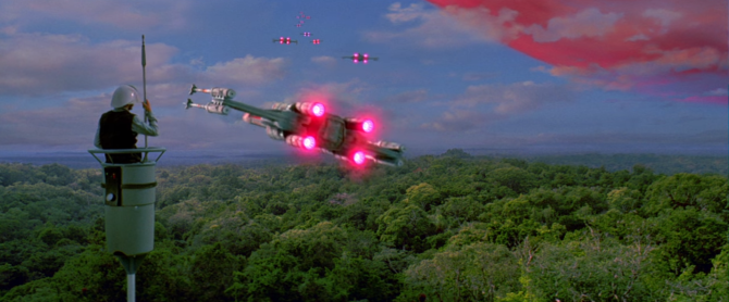Финальный бой в «Звёздные войны: Эпизод 4 — Новая надежда» заимствован из «Dam Busters, The» (1954), но еще ближе он к аналогичной сцене в «633 Squadron» (1964). А финальная сцена чествования героев в первом фильме практически покадрово скопирована с «Triumph des Willens» (1934).