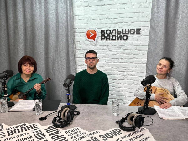 О подборе программы и личных историях музыкантов рассказали в эфире «Большого Радио» дирижёр оркестра Тимур Мадаминов, художественный руководитель Елена Гусева и солистка, играющая на кантеле, Ирина Волокославская.