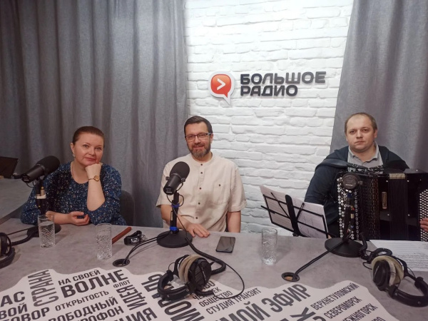 В программе «Точка зрения» на «Большом радио» встретились участники ансамбля песни и танца «Россия». В преддверии областного фестиваля‑конкурса «Русские напевы» хормейстер и руководитель ансамбля Андрей Серов, солистка Юлия Серова, а также дирижёр ансамбля русских народных инструментов «Россия» и аккомпаниатор Сергей Макаров в откровенном разговоре с ведущей Анной Будовской поделились тем, что стоит за сценическим образом коллектива, и что значит хранить северную песенную традицию.