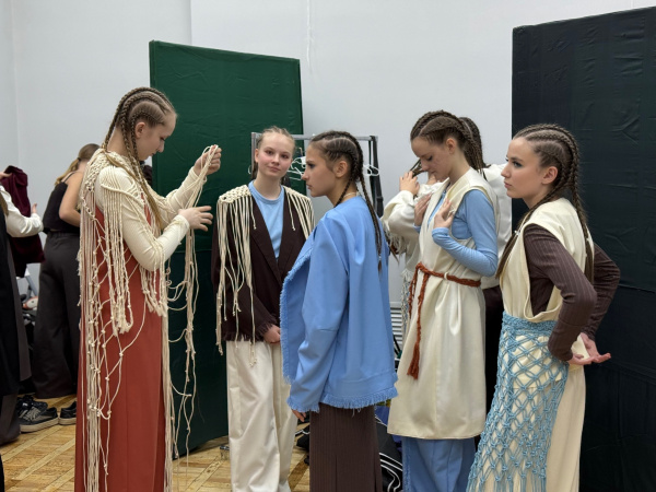 Так, например, Яна Кирьянова, автор коллекции «Стёжки-дорожки», помогала справляться с эмоциями ученицам Театра моды «Лелия», которые показали жюри и гостям фестиваля наряды. Девушки приехали в Мурманск из Ковдора, а занимаются все они в Центре детского и юношеского творчества.