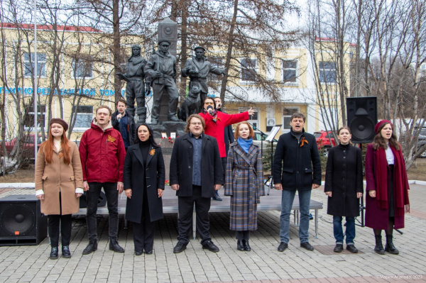 В Мурманске накануне Дня Победы состоялся концерт "Поют артисты о войне". В сквере у памятника Пограничникам Арктики актеры Мурманского областного драматического театра спели для северян душевные, самые любимые и знаменитые песни о войне, Великой Победе, прочитали письма солдат, воевавших в Заполярье.