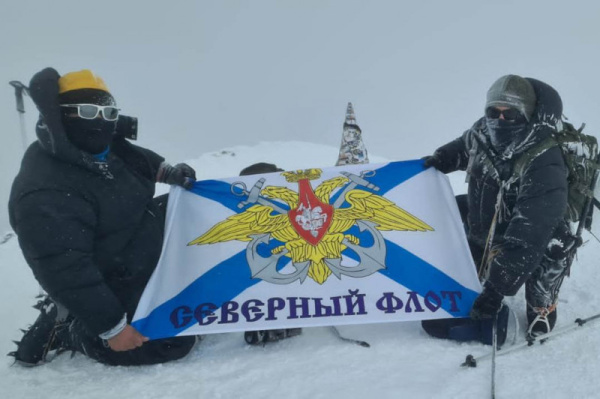 По достижении вершины, участники установили флаг с символикой Северного флота, чтобы отметить этот важный момент.