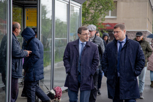 Игорь Морарь глава Мурманска и Юрий Сердечкин глава администрации провели осмотр хода ремонтных работ на улице Шмидта.