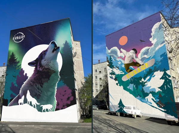 Картины, которые украсят городские фасады, выбраны жителями Ковдора. По результатам народного голосования в социальных сетях победителями стали образы сноубордиста и волка. Именно они расположатся на фасадах домов по улице Кошица рядом с уже существующим изображением оленя.