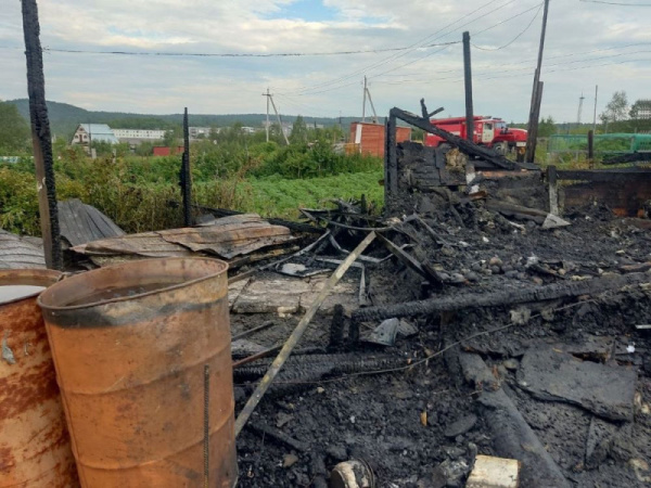Постройка была полностью уничтожена огнем. Причина пожара и ущерб устанавливаются.