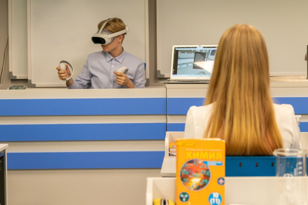 В гимназии №6 были установили специальные программы в кабинете химии. Теперь для проведения экспериментов используются виртуальная реальность и специальные очки.