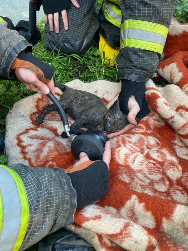 В результате пожара пострадал котенок, который был обнаружен спасателями. Он получил первую помощь. Сейчас животное находится в критическом состоянии и требует медицинской помощи от ветеринаров в ветклинике.