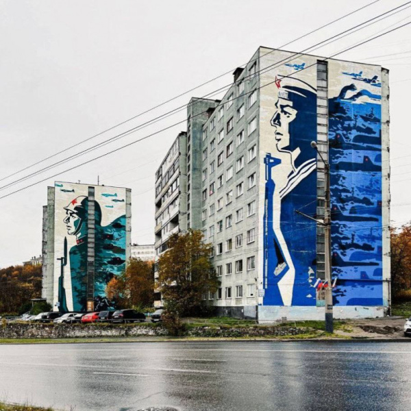 На торцах девятиэтажных зданий на проспекте Героев-Североморцев в Мурманске появились два новых панно, изображающих солдата и матроса, стоящих в почетном карауле. Об этом сообщает Оперштаб Мурманск.