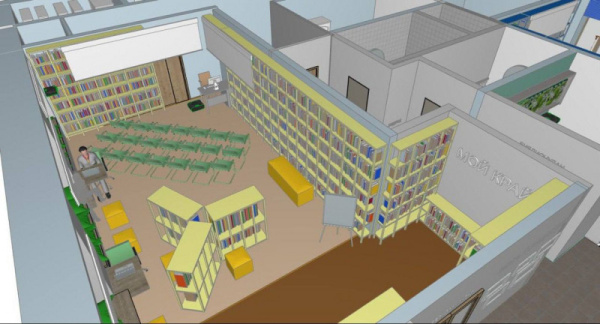 Этот библиотечный проект предполагает наличие книжного и событийного зала, а также библиочулана с медиазоной.