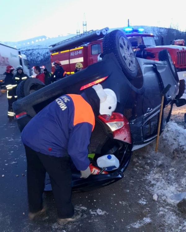 На 13 км автодороги Кировск-Апатиты произошло опрокидывание автомобиля Hyundai. Информация о Дорожно-транспортном происшествии (ДТП) поступила сегодня в 8:47.