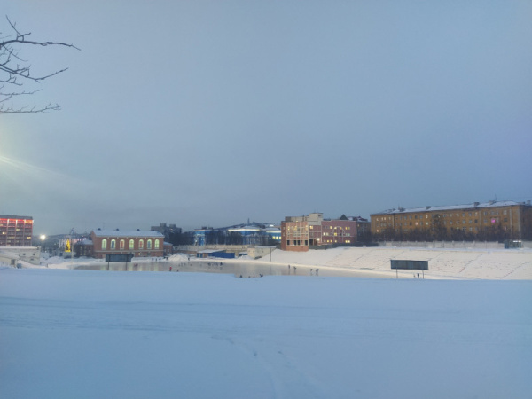 На центральном стадионе профсоюзов в Мурманске начали заливать каток.