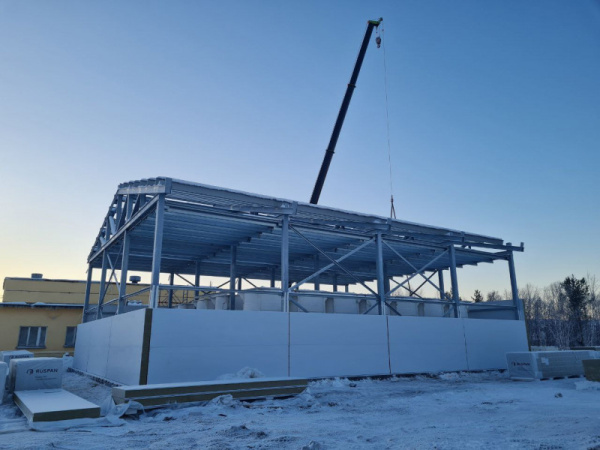 Подрядчик приступил к формированию контура здания, предназначенного для установки нового очистного оборудования АЭРОМАГ. Это инновационное отечественное устройство, функционирующее по принципу водопада, где отделение примесей происходит под давлением мощного напора.