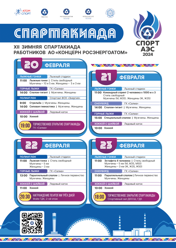 С 20 по 23 февраля при поддержке Кольской АЭС будет проходить масштабное спортивное мероприятие – зимняя Спартакиада работников АО «Концерн Росэнергоатом» «Спорт АЭС – 2024».