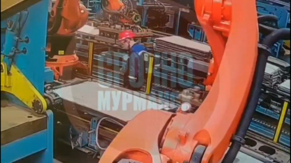 На видео, снятом камерой видеонаблюдения, видно, как голову рабочего зажал движущийся механизм. По предварительным данным, мужчина выжил и был доставлен в медицинское учреждение.