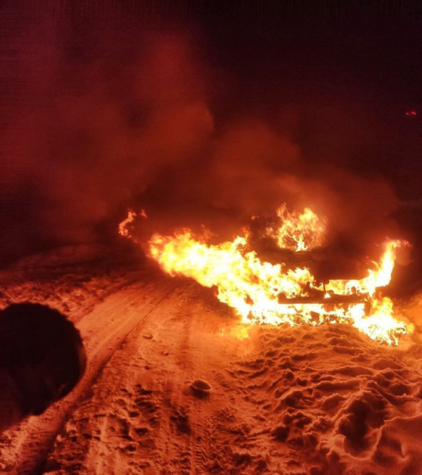 Пожар был потушен в 3:15. У автомобиля: обгорел капот, повреждено лобовое стекло, салон закоптился.