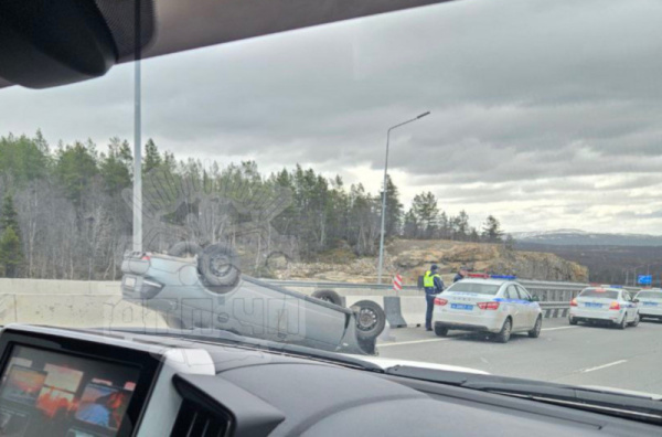 В Мурманске автомобиль «Лада Приора» перевернулся на крышу. ДТП произошло около 5:35 утра на 6 км Восточно-Объездной дороги.