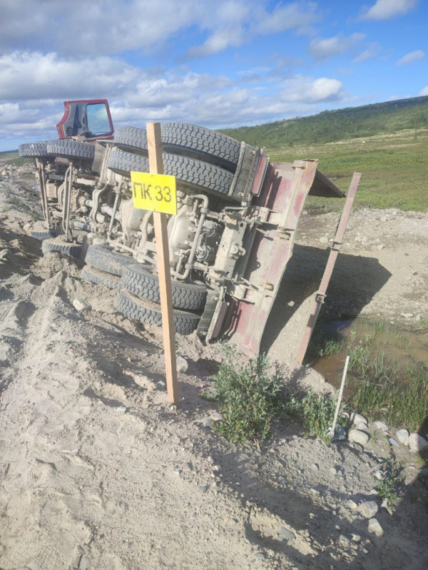 4 июля на подъезде к Териберке грузовой автомобиль КАМАЗ съехал с дороги и опрокинулся в кювет. Сообщение об инциденте поступило в 15:22 по номеру 112. О пострадавших информации нет.