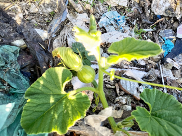Ранее на этом полигоне уже проросли кабачки, подсолнухи и даже кусты картофеля - настоящий огород на свалке.