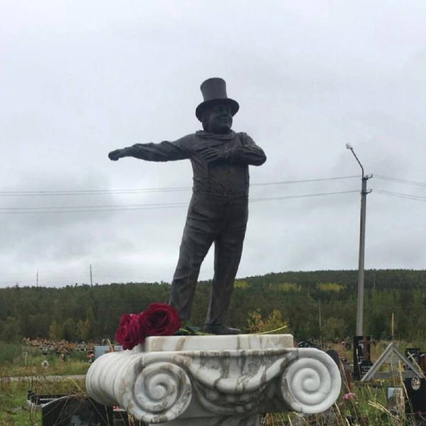 Так выглядел памятник заслуженного артиста Валерия Октябриновича Журавлёва до того, как над ним надругались неизвестные. Как сообщают коллеги по театру, вандалы украли статую и повредили камень.