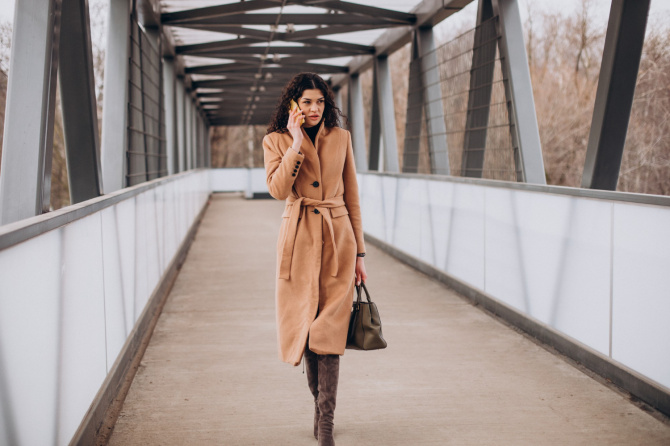 2. Массивные коричневые сапоги на блочном каблуке визуально удлиняют фигуру, а в сочетании с оливково-зелёном свитером и темно-коричневым тренчкотом с юбкой сделают ваш образ притягательным и неповторимым.