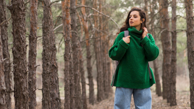 Это прекрасный вариант как для вечерних образов, так и для повседневного выхода. Обратите внимание на свитер в изумрудном оттенке, добавьте небольшую деталь например, шарф, в свой монохромный нейтральный образ, и у вас получится отличный вариант для текущего сезона. А если вы не боитесь экспериментов, то вам отлично подойдёт изумрудное пальто.