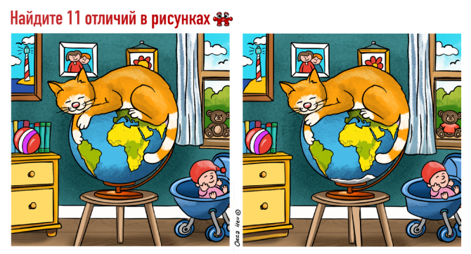 Нужно найти 11 отличий между картинками, которые представлены выше. Помните: у вас всего 1 минута на раздумье.
