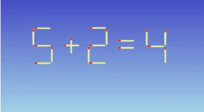 Головоломки со спичками — незаменимый способ развития мышления и творческих способностей. На изображении мы видим равенство «5+2=4», выполненное с заметной ошибкой. Как решить эту проблему?