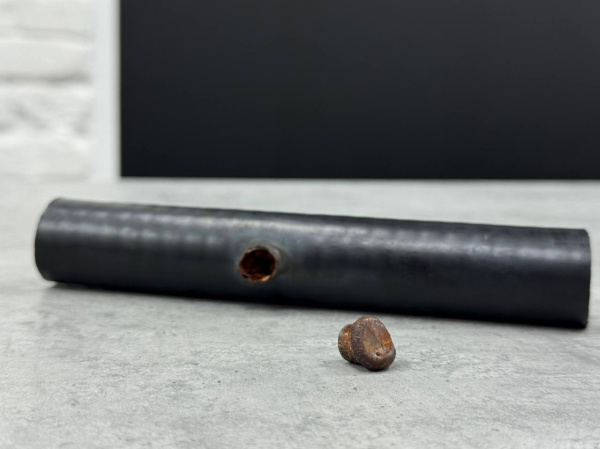 Между фидером и металлической стойкой была… пуля. Небольшая – чуть больше сантиметра, однако пробила толстую оплетку кабеля. Действительно, недалеко от радиосопки есть частный стрелковый клуб, однако до него довольно далеко и стрельбище расположено заметно ниже по рельефу. Попасть в кабель специально практически невозможно и равносильно желанию попасть по человеческому волосу, однако, как выяснилось опытным путем – бывает всё.